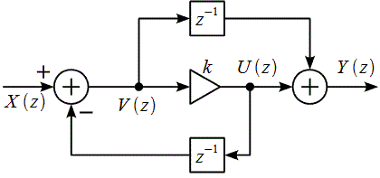 Рассмотрим цифровой фильтр первого порядка с передаточной