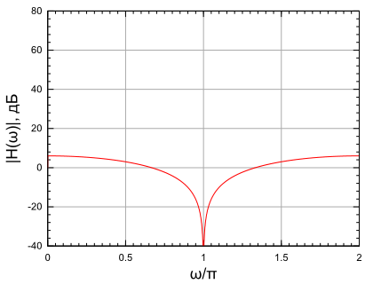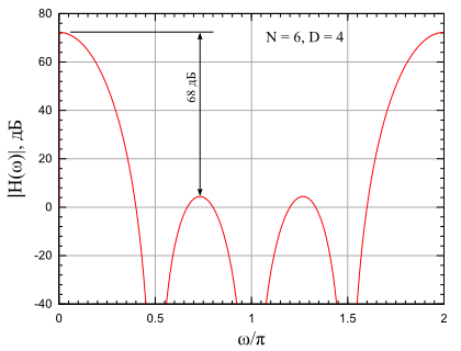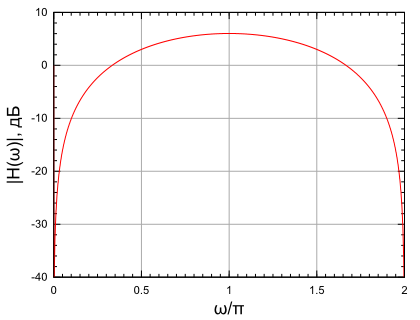 Коэффициент усиления данного фильтра согласно (17) равен 60 дБ, что