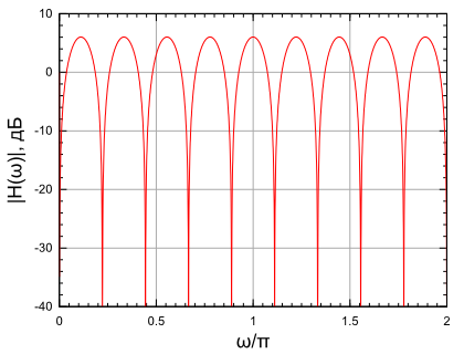 Рисунок 7: АЧХ и ФЧХ гребенчатого фильтра при