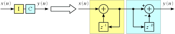 простейших фильтра: БИХ фильтр интегратор и гребенчатый КИХ фильтр.