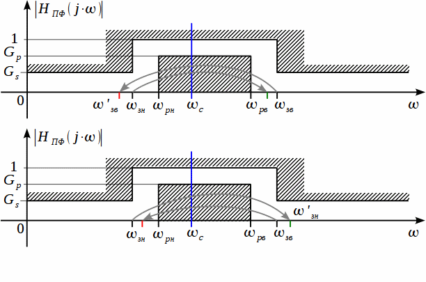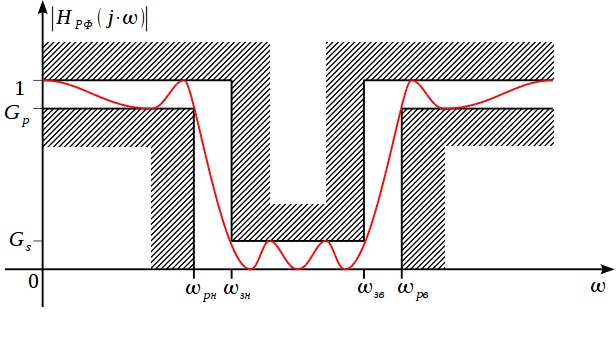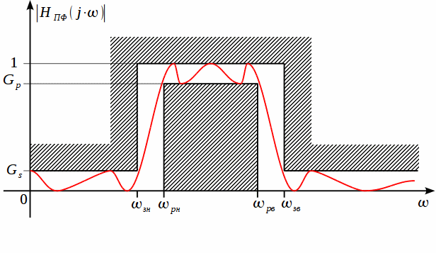 Рисунок 1: Коридор АЧХ полосового фильтра