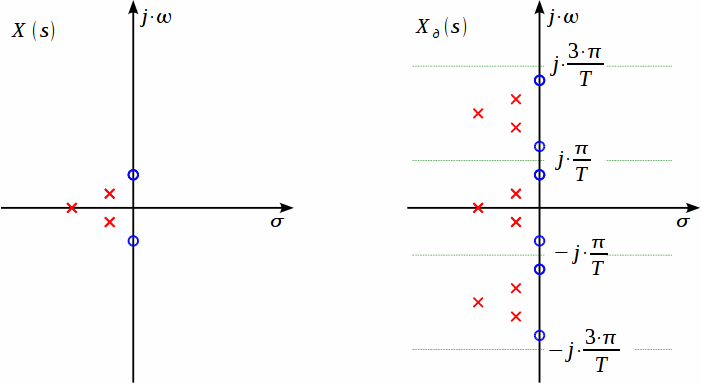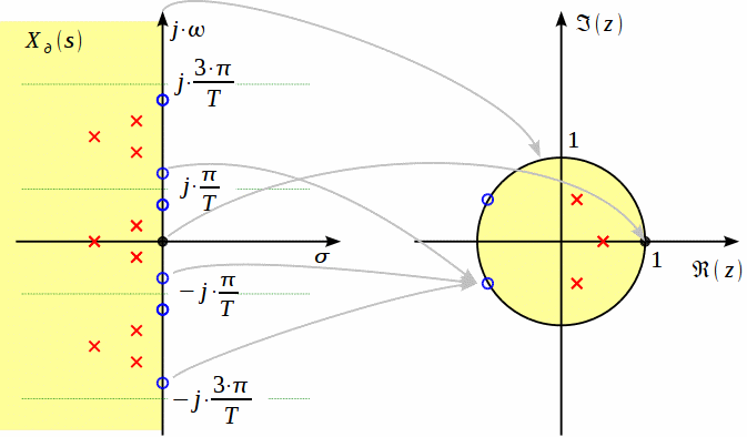 Рисунок 2: Образы по Лапласу для непрерывного и дискретного сигналов