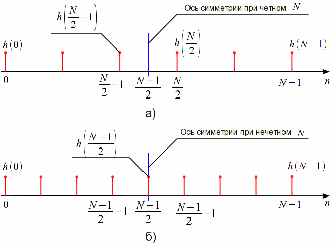 Важно отметить, что при четном порядке (нижний график рисунка 7)