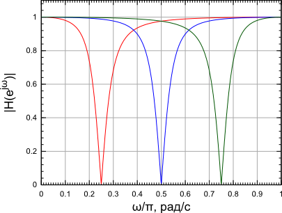 можно заметить, что АЧХ на заданных частотах равна нулю, а