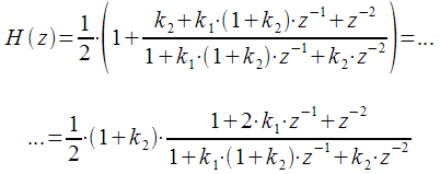 что в общем случае цифровой фильтр второго порядка имеет пять